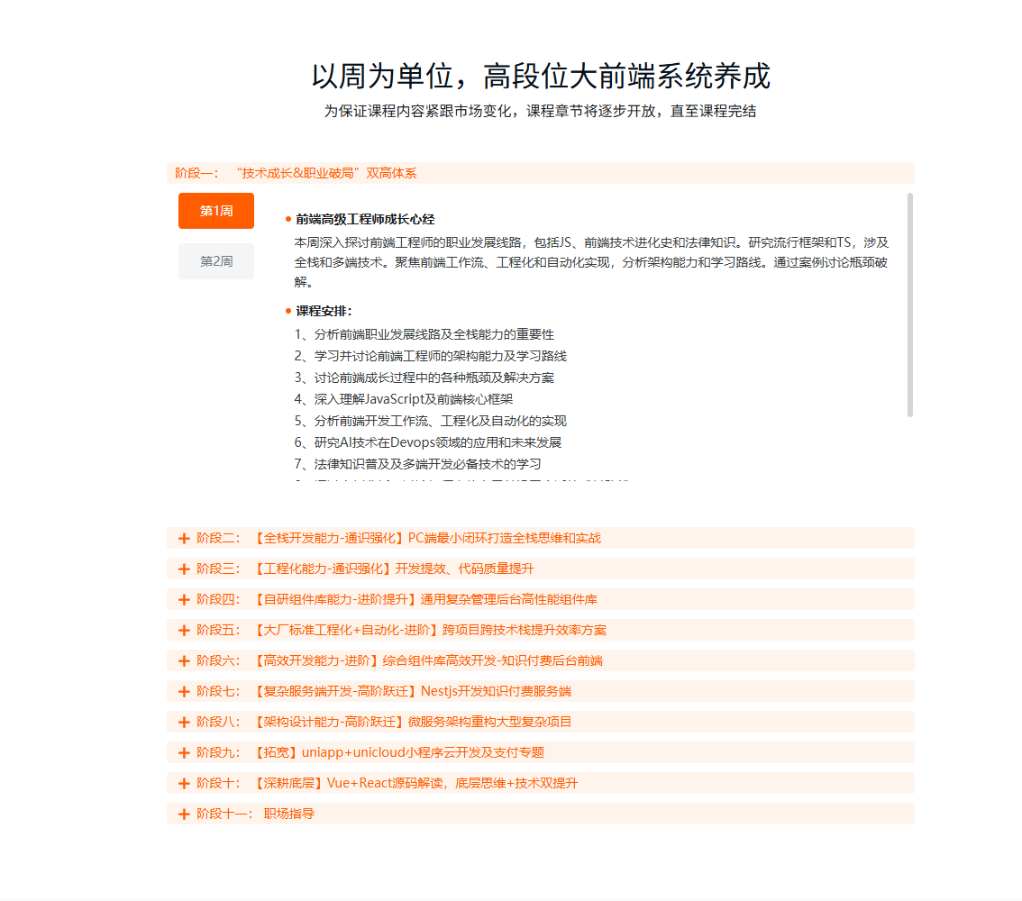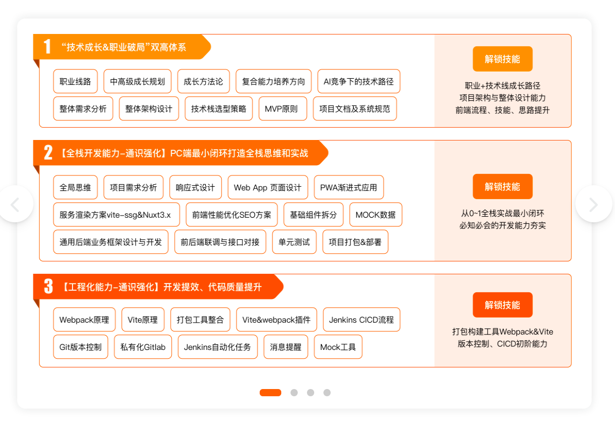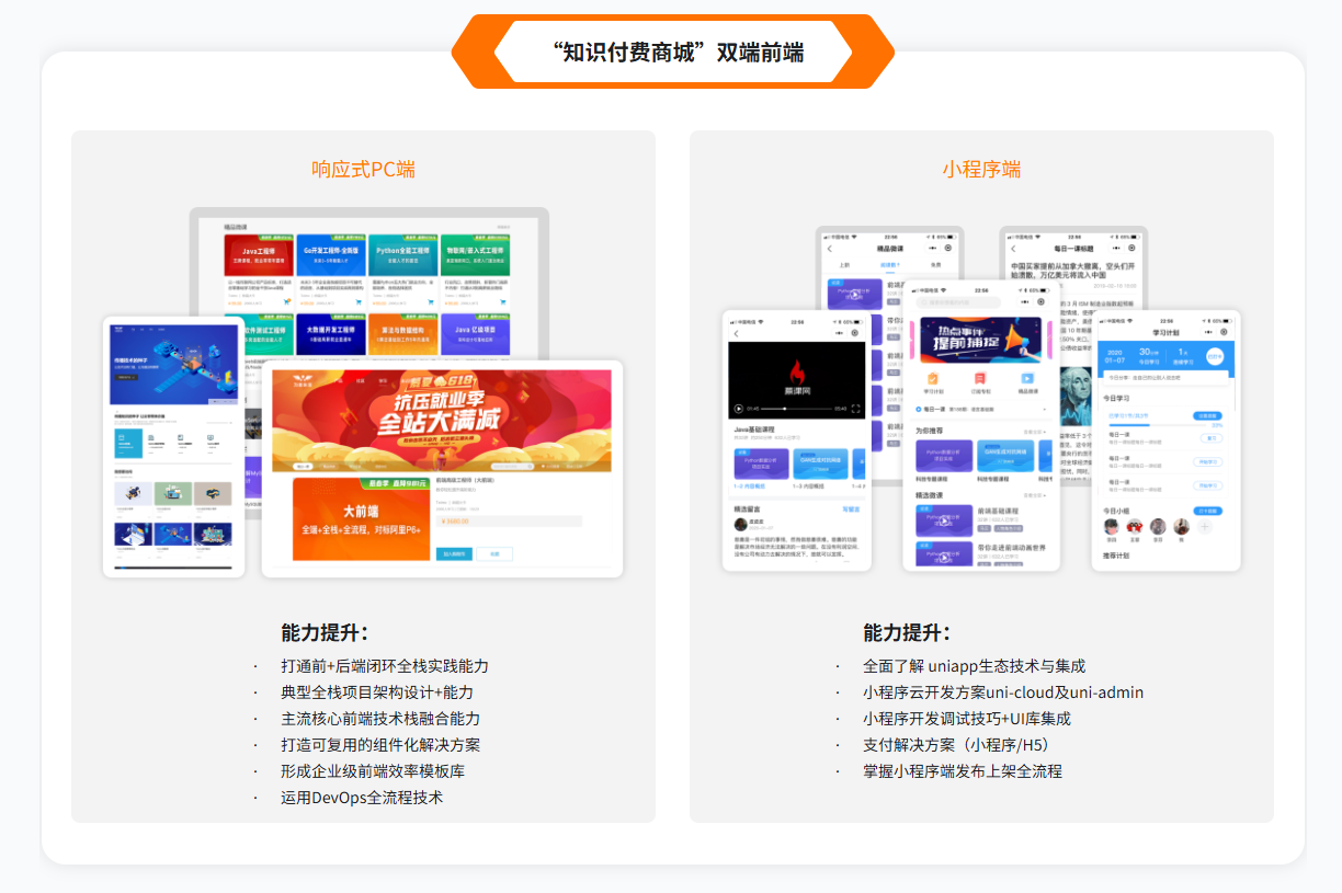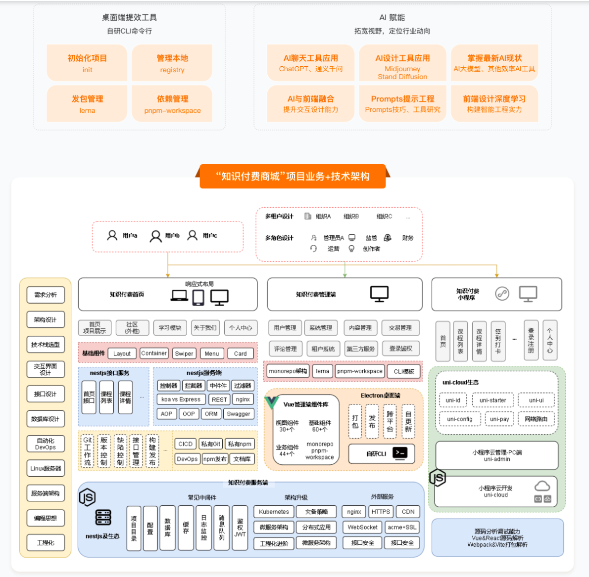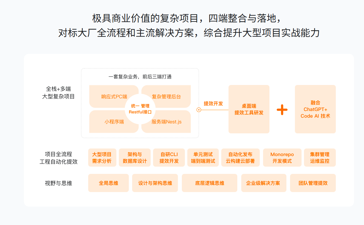 深度打通“全栈 + 全流程 +多端+ 提效+AI赋能” ,递进式锤炼思维与高阶技能,高效实现能力跃迁