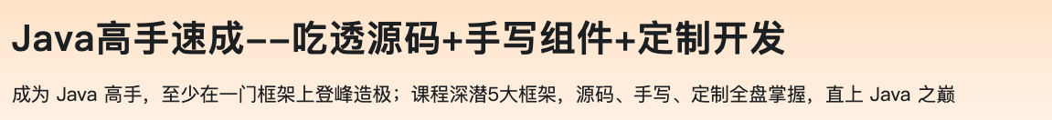 未来10年,Java将迎来新的光明,广阔前景,将成为包括AI在内大多领域的基石,越早成为Java高手,越有机会获得更广阔发展空间。本课为想成为Java高手精心设计。 深入浅出Spring、Spring Boot、Nacos、Ribbon、Feign 五大微服务框架,并配有高清手绘架构图一路导航,带你轻松完成“源码剖析–架构设计–手写内核–定制改造”四个成长阶梯。最终助力你掌握“看懂、能改、会造”框架的高阶能力,冲击 Java 之巅。