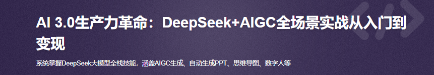 ✅ 零基础新手:系统学习DeepSeek与AIGC,掌握智能对话与内容生成核心技能。