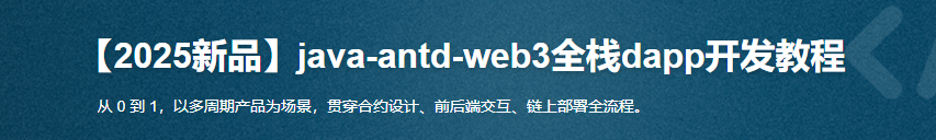 课程涵盖从智能合约设计、Java后端开发、Ant Design前端实现,到链上测试与部署的全流程从 0 到 1 的实战项目,帮助学员掌握区块链DApp开发的核心技能。