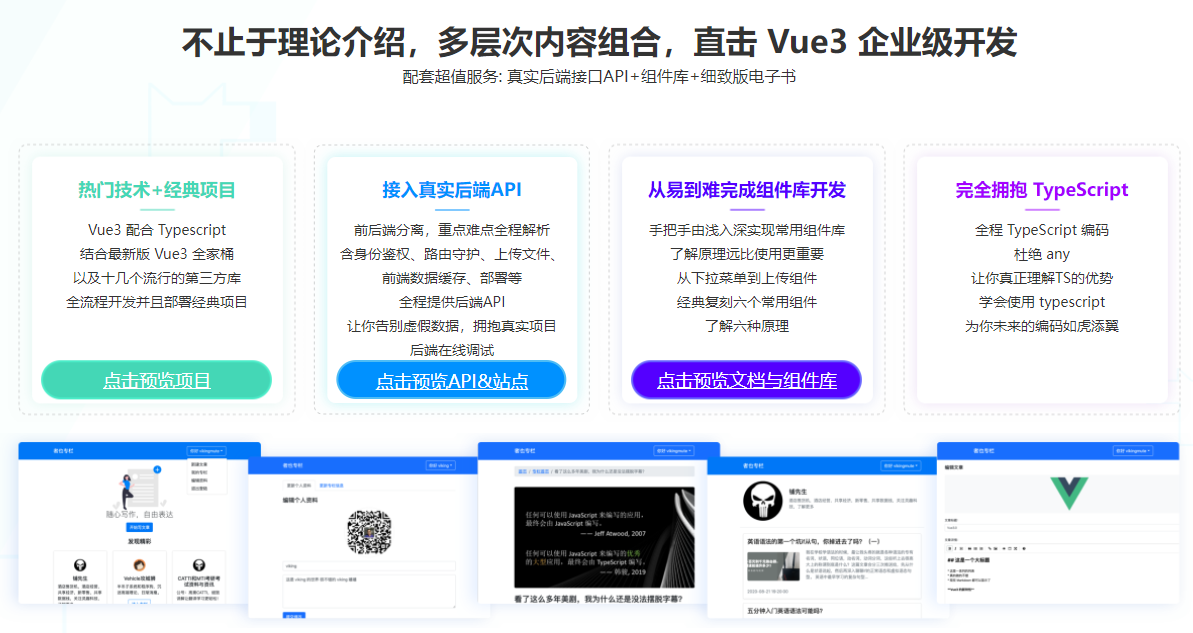 Vue3 +TS ,使用新版Vuex 和 Vue-Router 全家桶让你学会一个基本的组件库的开发思路和技巧。接入真实后端API,提供抓住前后端分离开发痛点 – 权限管理,路由控制,全局Store 结构设计,前端缓存实现等。